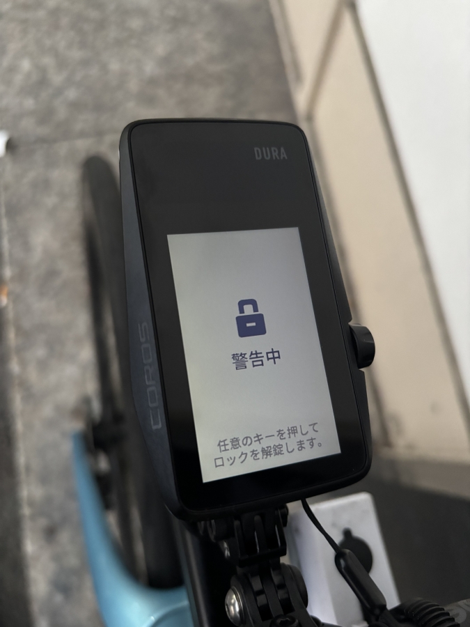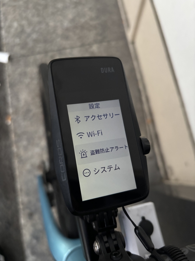 このサイコンには盗難防止アラートが搭載されています。バックボタン(ダイヤルじゃない方のボタン)を長押しして設定画面から「盗難防止アラート」を選択。