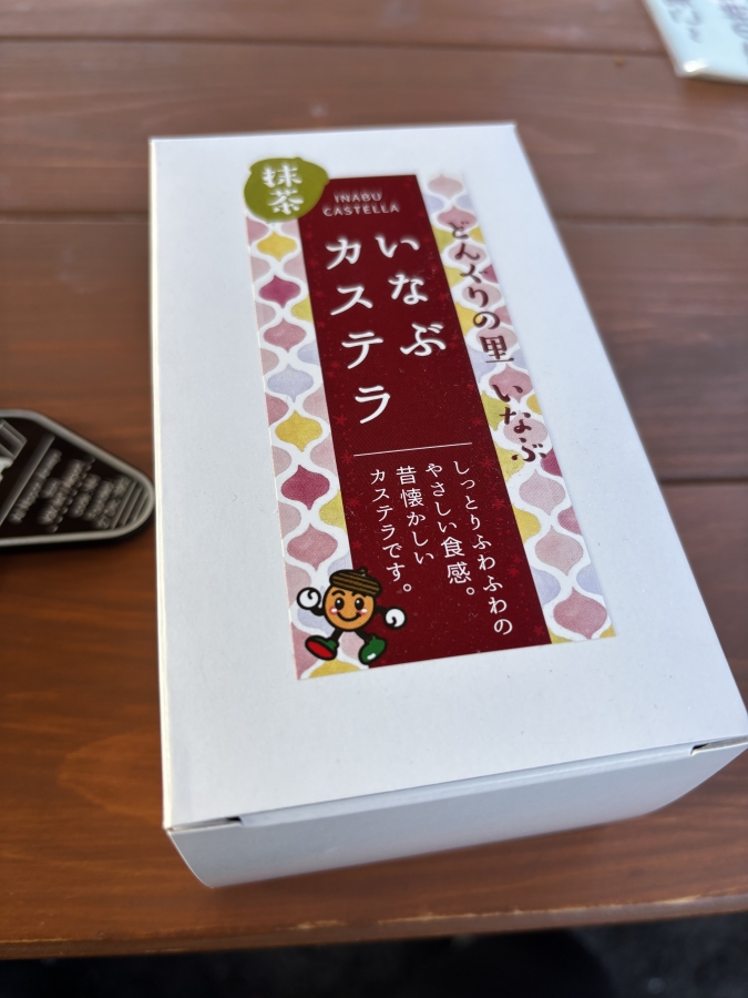 はい。「いなぶカステラ」です。結構な人気を誇り、売り切れることも多いんだとか。このシーズン、車やバイクでこのあたりの紅葉を見に来る人々が多く、道の駅もかなり混んでいましたが、入手できました!!ゆるキャン△ファンからしたら非常にうれしいことです。