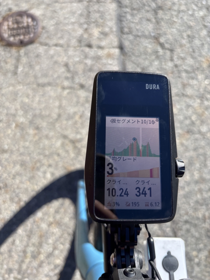 地図の下部分が色付きで斜度を表示してくれて、また自分がいま上り坂のどのあたりにいるのか表示されるので、無理のないペース配分が可能になります!