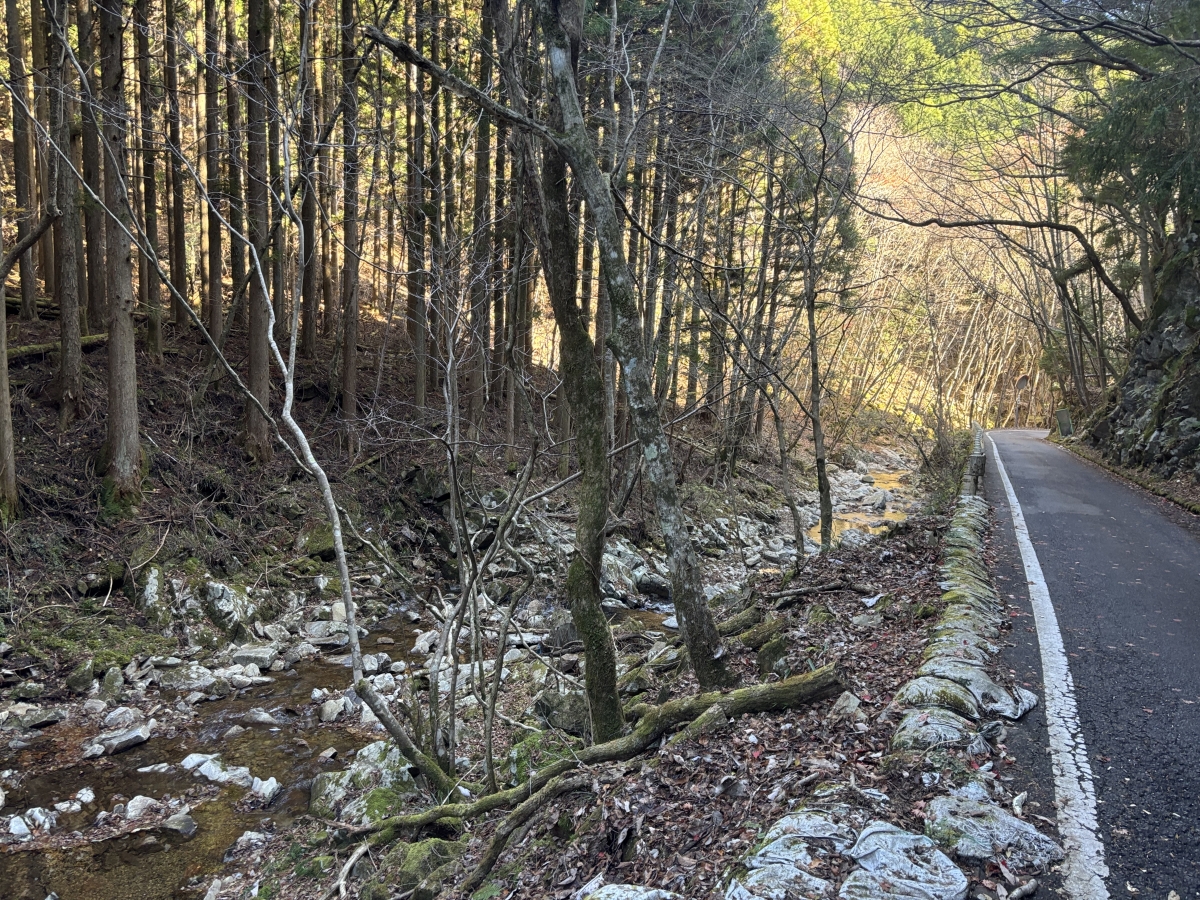 矢作ダムの奥には矢作湖があるので、そのそばの道を走って山奥へ入ります。