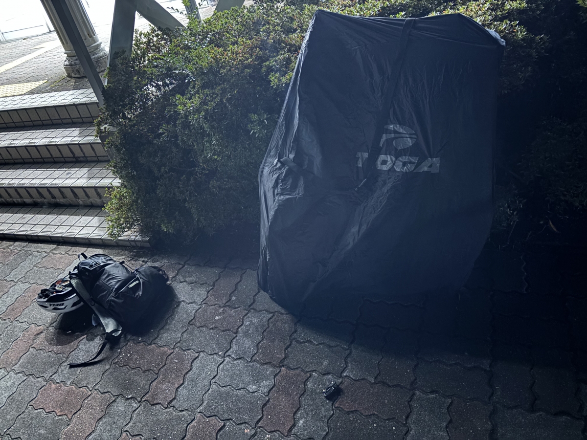 輪行も慣れたものです。10分もあればこの状態にできるくらいには輪行しまくってます。