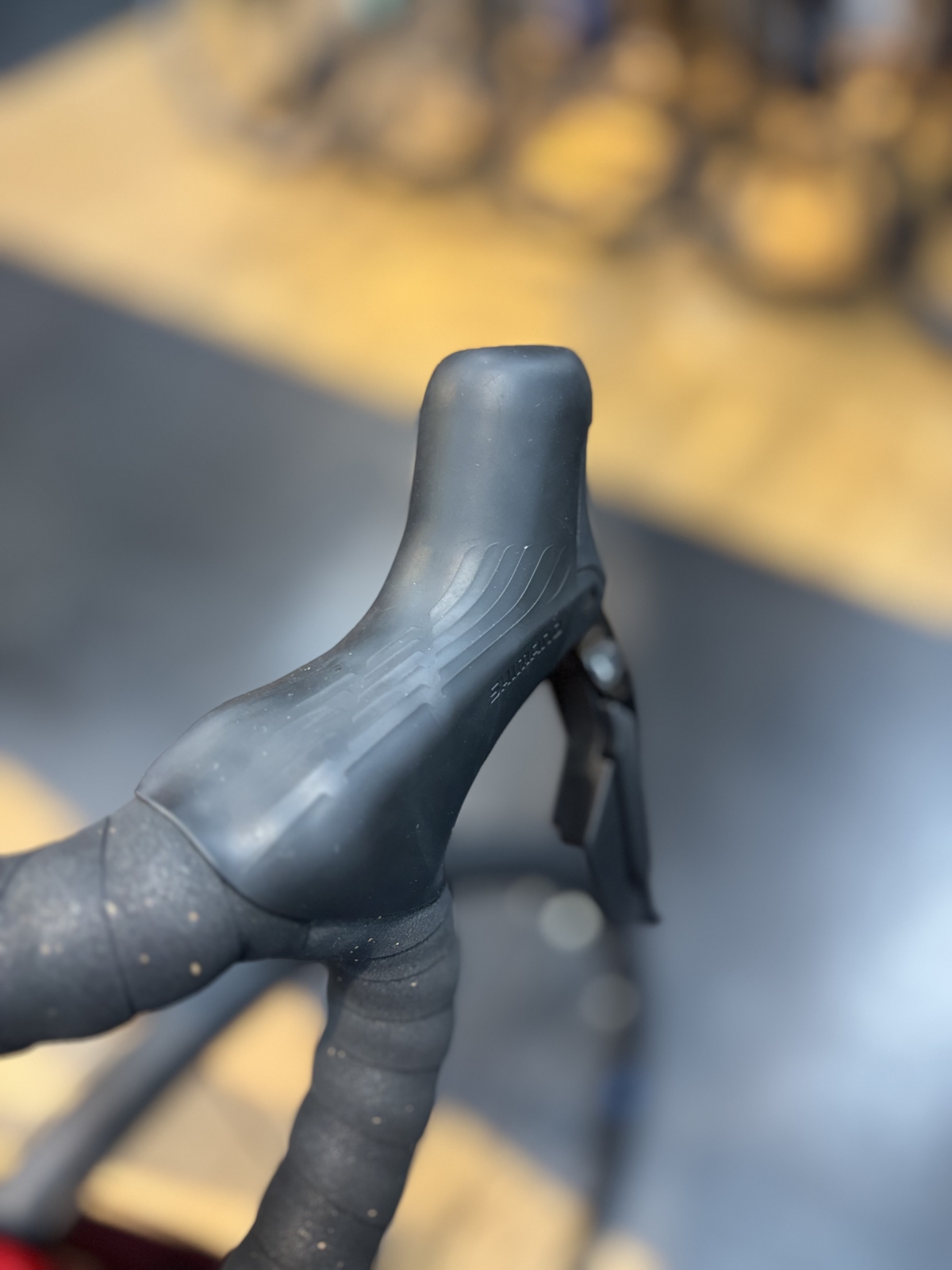 Di2のほうが、レバーがコンパクトなんです!僕もですが、特に手が小さい方にとって大きいレバーは操作しにくいです。でもDi2なら非常に手にフィットする形状をしていて、操作もしやすいし、疲れにくくなっています!!