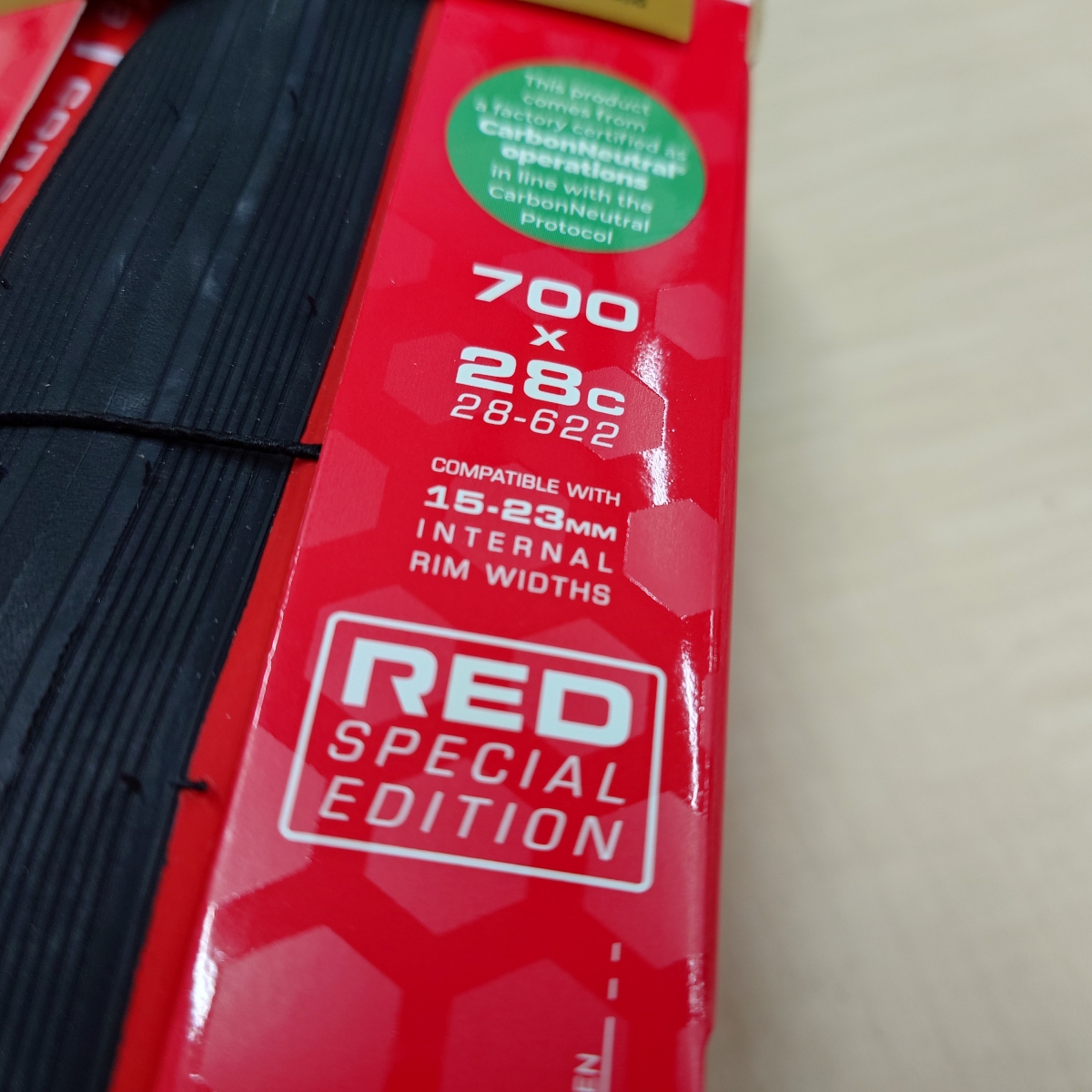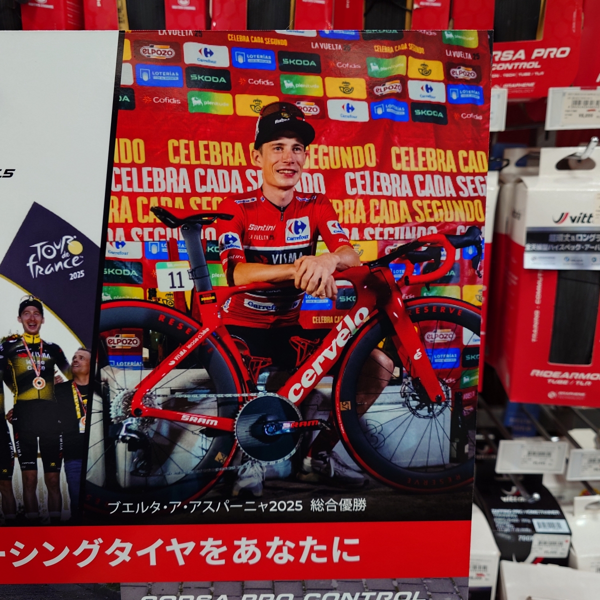 このタイヤは2025ブエルタを制覇したヨナス・ヴィンゲゴーのために作られたマイヨ・ロホ仕様の特別カラー。