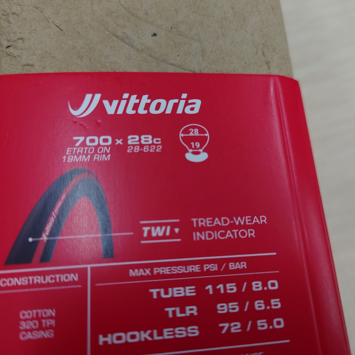 15mm~23mmのリム幅に合わせられるように設計されています。トレンドの25mm幅にはヴィットリアの場合は29cという特殊サイズを用意して対応しています。もしくは30c以上が合うので、フレーム側のタイヤ許容幅と併せて確認して装備してください。