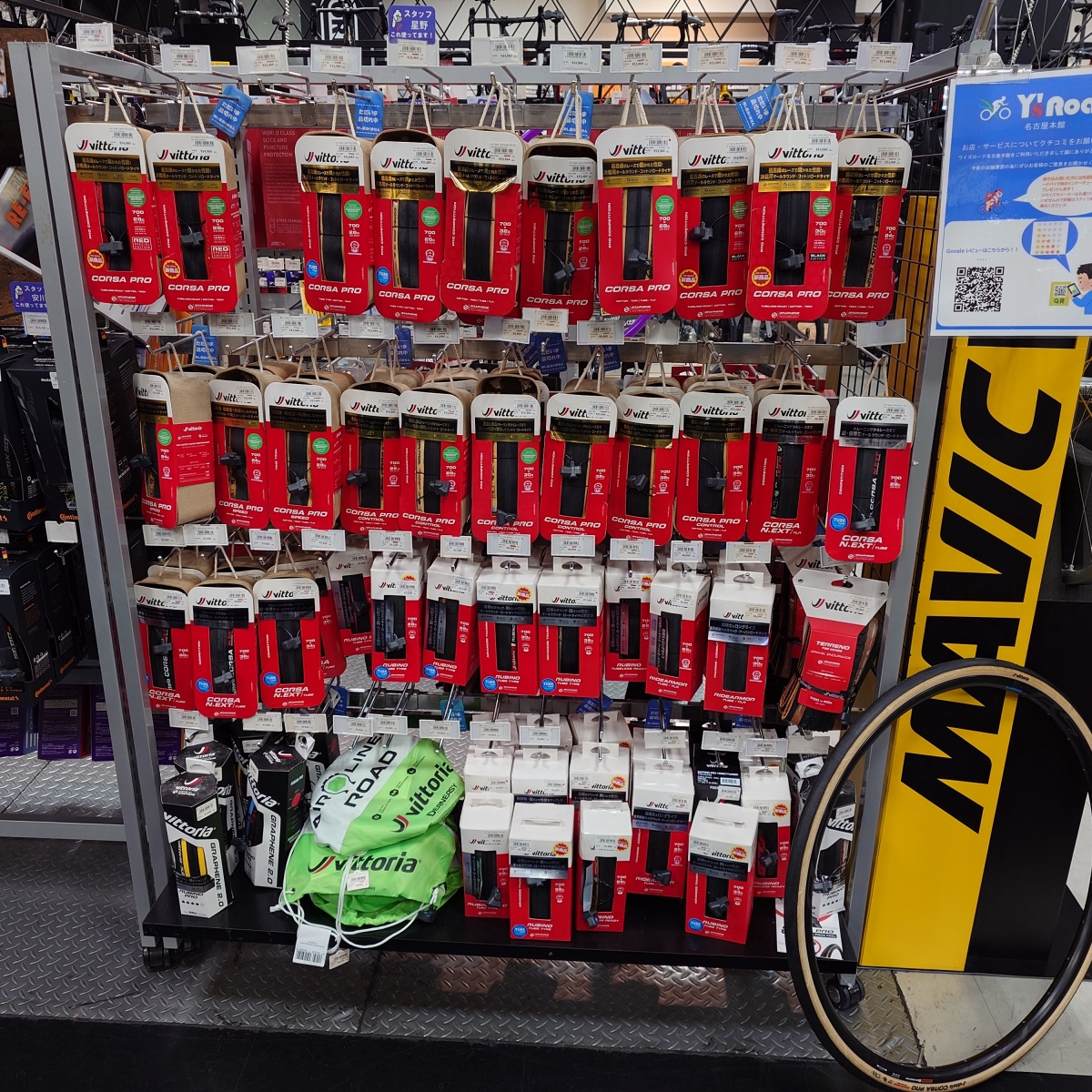 当店のタイヤコーナーは色々なブランドがありますが、ヴィットリアはその中でも多く用意されています。