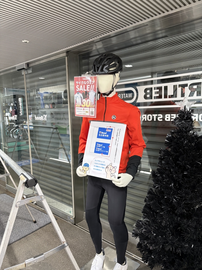 今ならワイズロード名古屋ウェア館でセール開催中。サイクルウェアをお求めの方は是非ワイズロード名古屋本館の隣、ウェア館までお越しください。