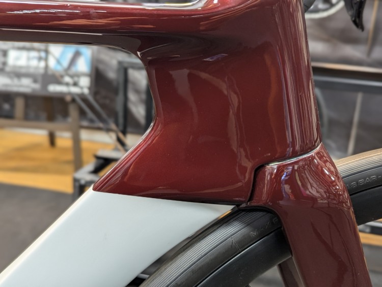 シートステーとシートチューブの接合部も空気が流れるような設計をしており、ORBEAの空力についてのこだわりが感じられます。