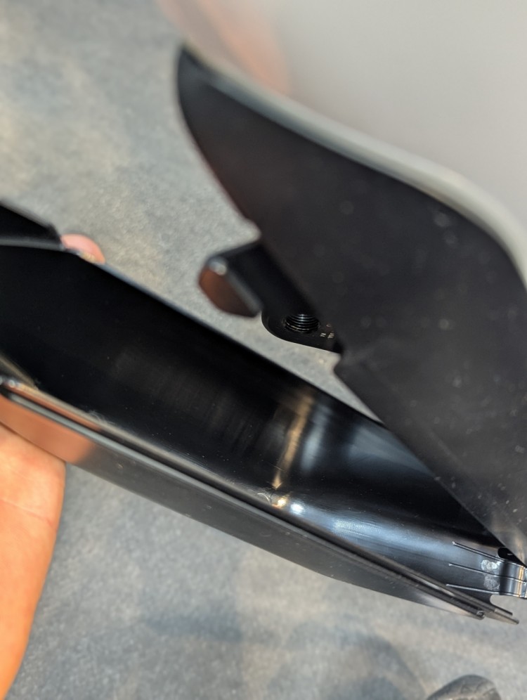 ディレイラーが収まる様な形状をしており、ディレイラーに当る空気を削減する効果があります。