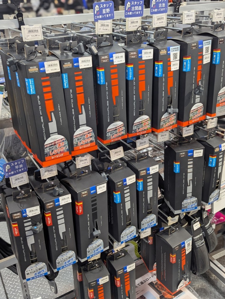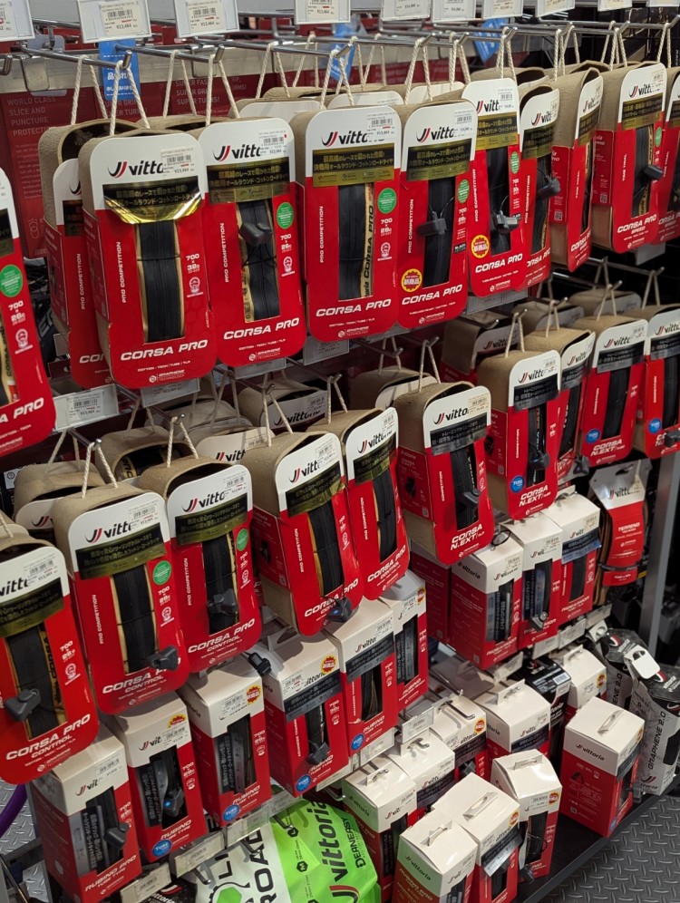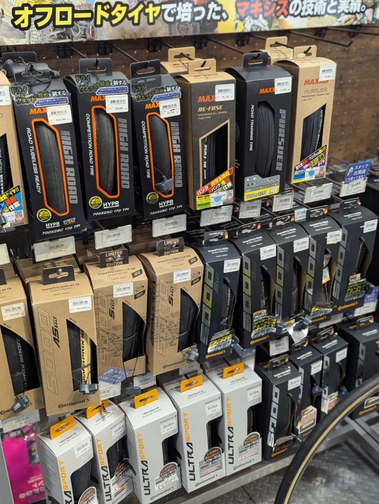タイヤは「シュワルベ」「CONTINENTAL」「VITTORIA」「PIRELLI」など、