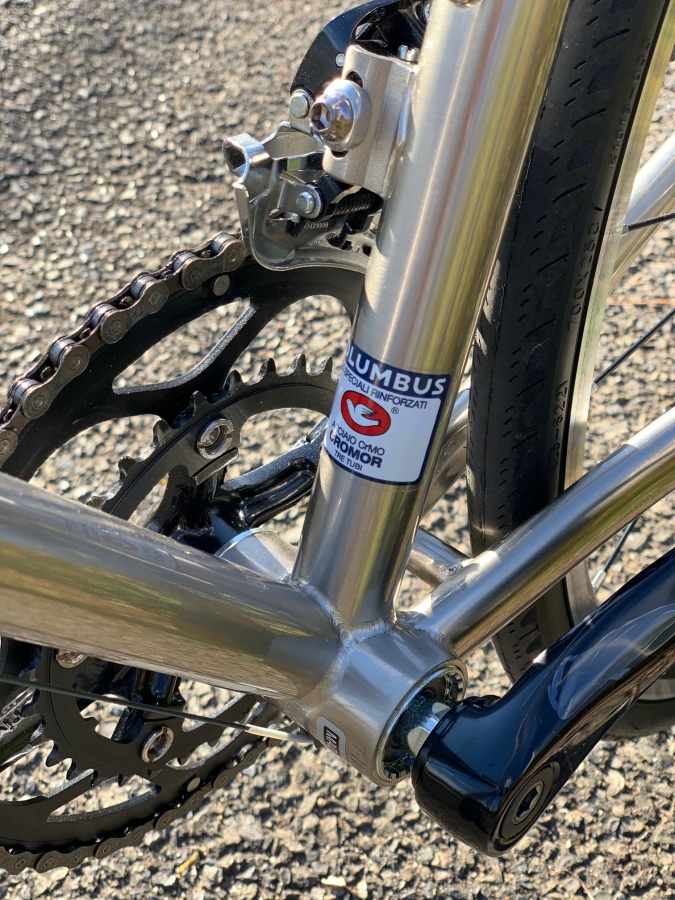 乗り味はクロモリ独特のしなりを効かせて軽快に進んでいく感じがたまらなく気持ちよい。フレームには、定評のあるコロンバス社製のクロモリチューブを採用しています。クロモリ特有の「しなり」を活かしつつ、ダブルバテッド加工(パイプの両端を厚く、中央を薄くする技術)を施すことで、強度を保ちながら驚異的な軽量化を実現し、シルキーな乗り味、フレームとの一体感を味わえます。湾曲したシートステーはリアのトラクションを確保。タイヤがしっかりと路面をつかみ快適なロングライドをサポートします。サドルも厚めでクッション性も高くお尻の痛みを軽減します。