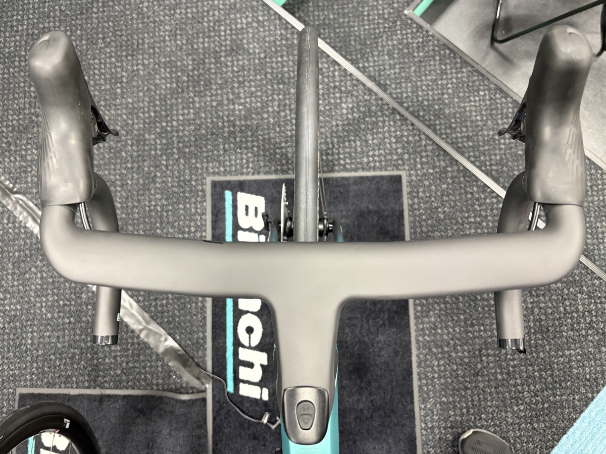 カーボンホイール、カーボンレールサドルに加え、なんと一体型のカーボンハンドルまで純正装備!!