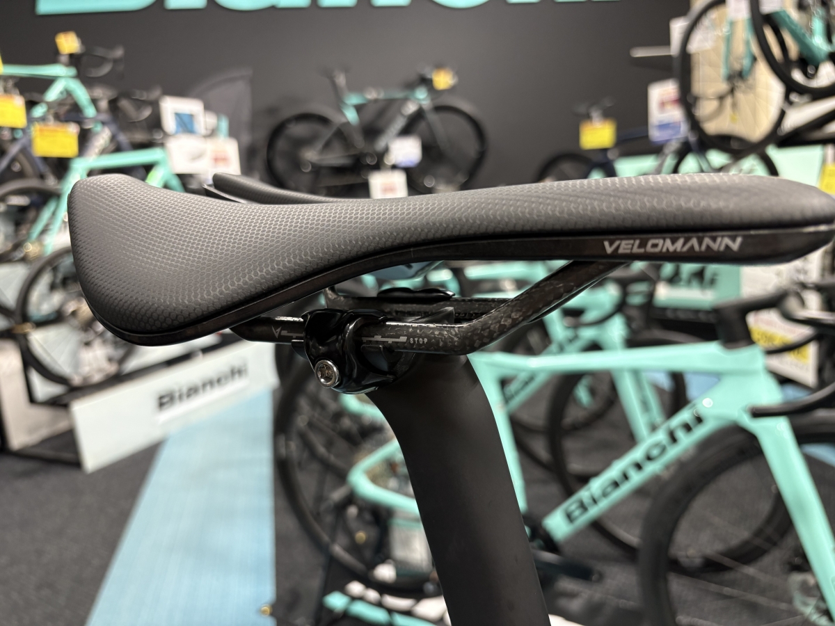 さらに、サドルもVELOMANNによるカーボンレールサドルが純正で装備されているんですヨ!