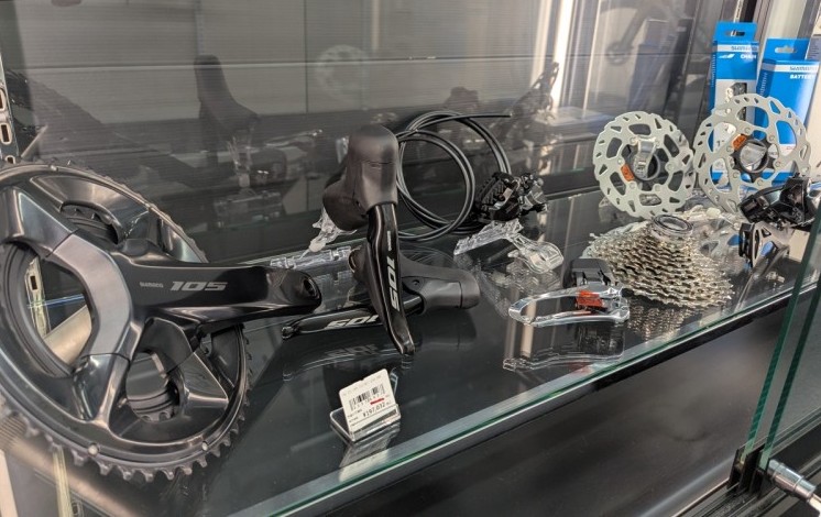 アルテグラグレードからレバー上部にスイッチが付いており、このスイッチで変速やサイコンのページを変えることが出来るようになります!下ハンドルに付けるスプリンタースイッチも増設できるようになるアルテグラがオススメです!今回はコスパがテーマなので105Di2で見積を出してみます!