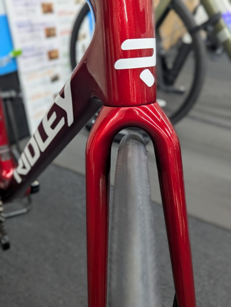 ベルギーのメーカーであるRIDLEYは振動吸収性に優れています。ベルギーでは石畳が多くガタガタした道が続くため乗り心地が良いのは重要なポイントになります。チェーンステーも太くなっており、振動をしっかりと吸収するようになってます!