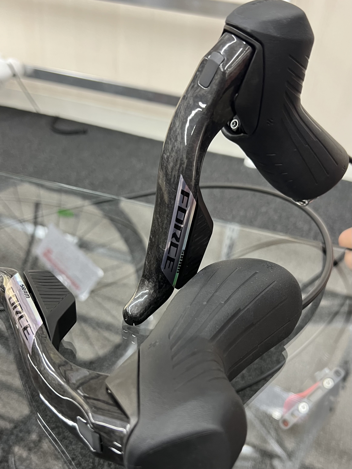 前作を使っているからこそよりそこの差に感動しましたね。悪いとは言いませんがやっぱりSHIMANOと比べるとどうしてもブレーキレバーの引きが重たく感じます。そんな中で新型(RED)に触る機会をいただきSHIMANOにも勝るとも劣らない軽さがあることを実感できました!!