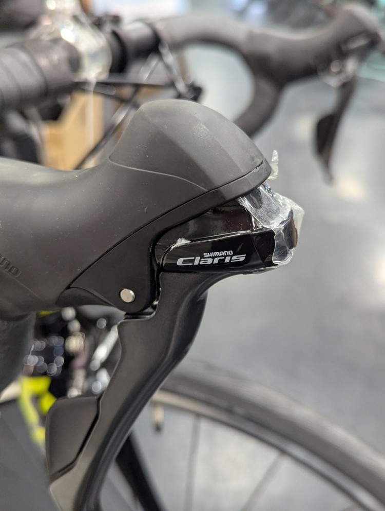 エントリーモデルによく採用されているSHIMANOのCLARISグレード(8速)のコンポーネントがついてます。