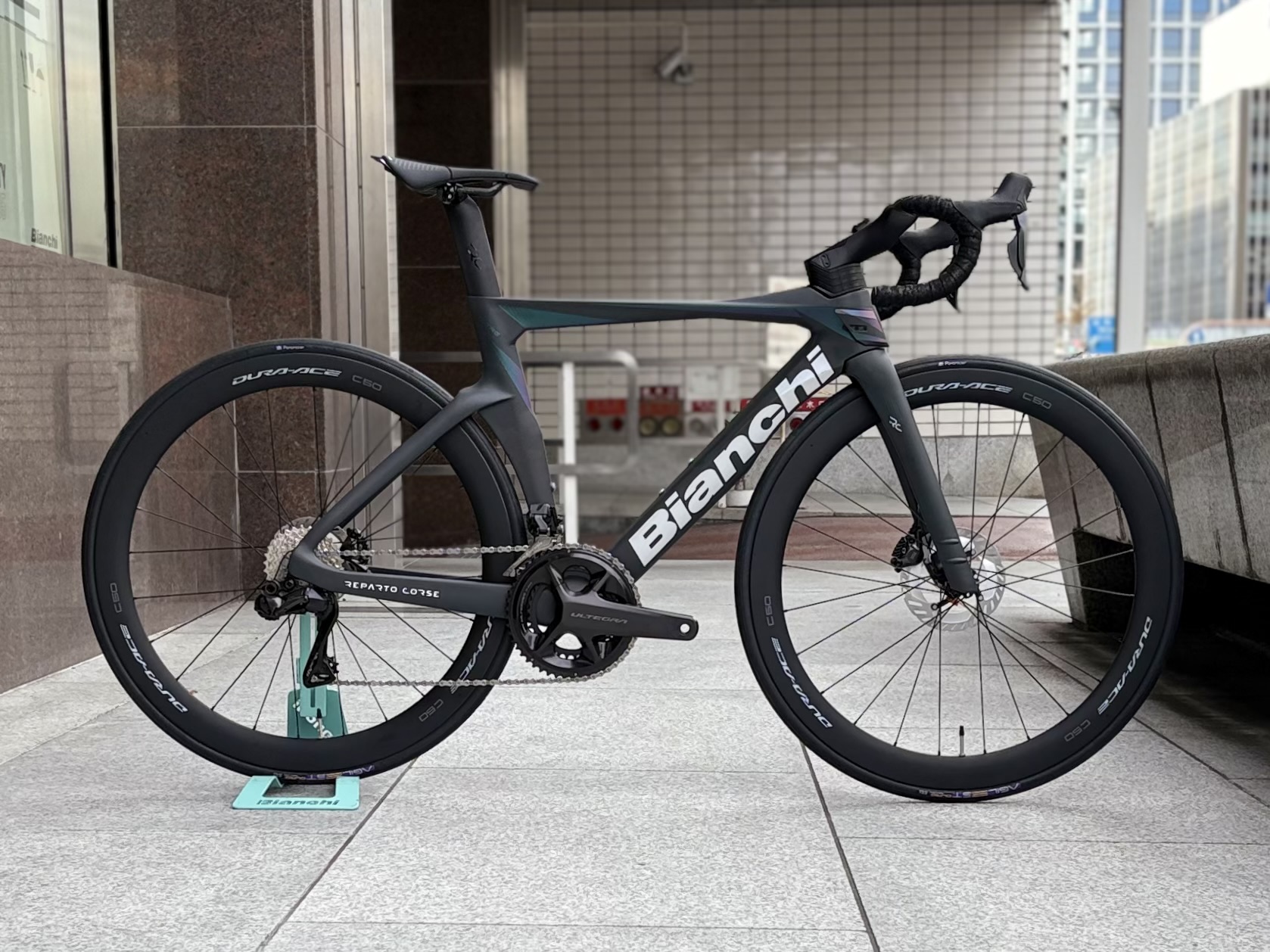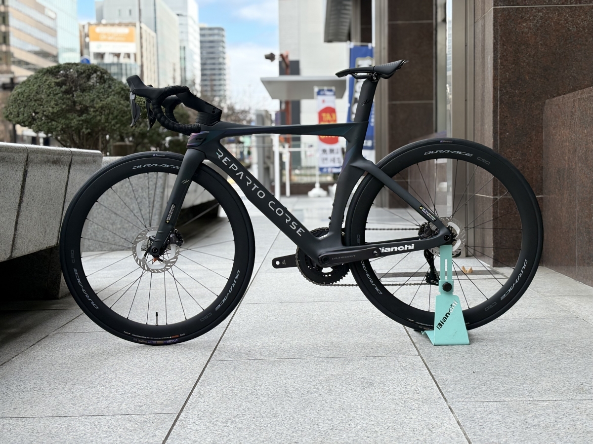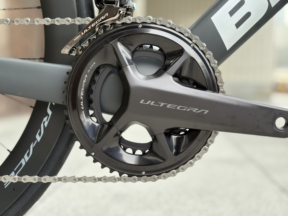 コンポーネントはULTEGRA12速。電動変速の機能を最大限活かしたモデル。安定していて尚且つ速く、剛性も十分な変速周りに。