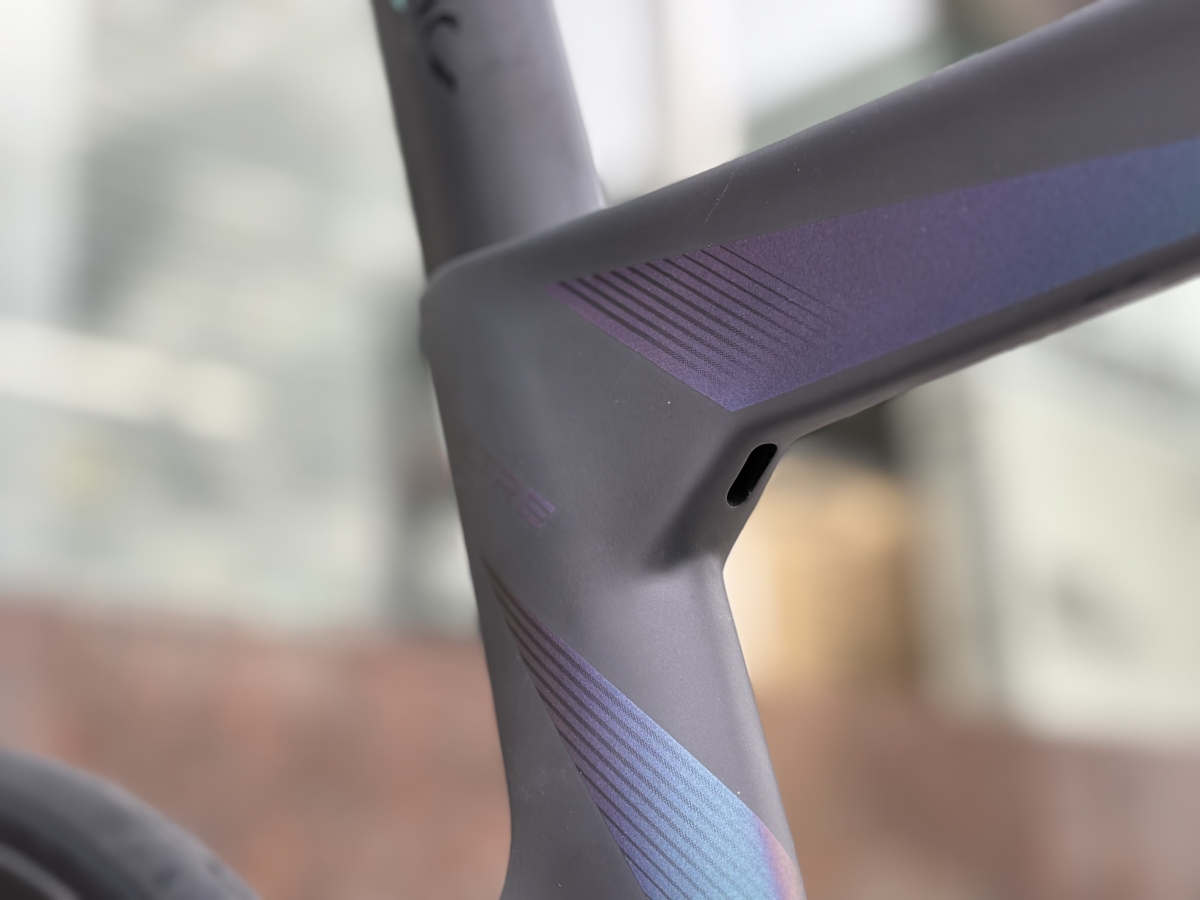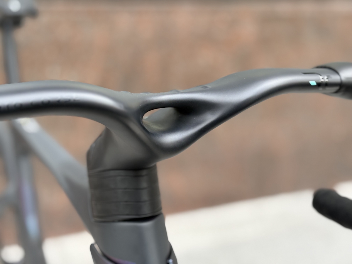 奇抜な見た目をした一体型ハンドル。上部にはまたもヴォルテックスジェネレータがついています。トンネルを設けることによって空気の圧を調節。足の周りを低圧ゾーンにすることで空気を乱れを作らずにスムーズに足を回すことができます。