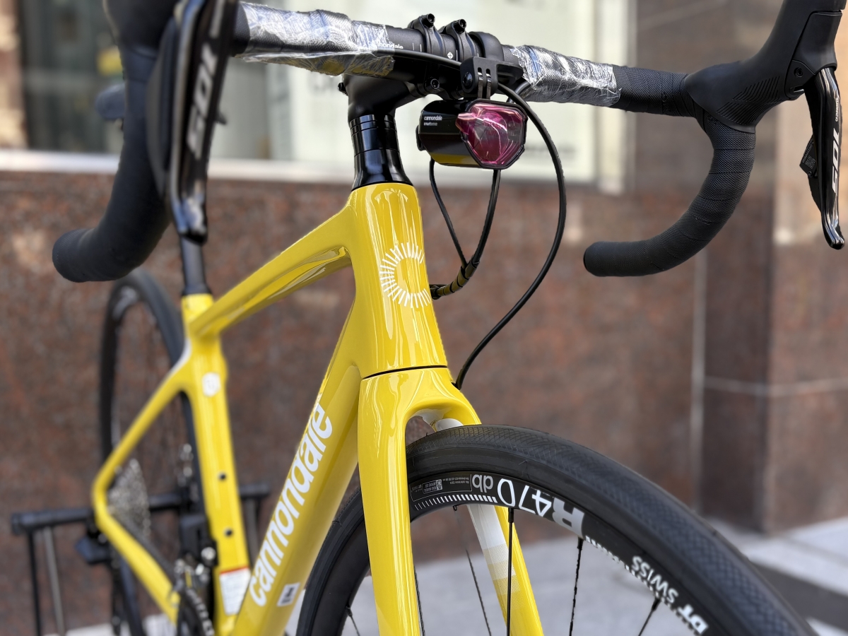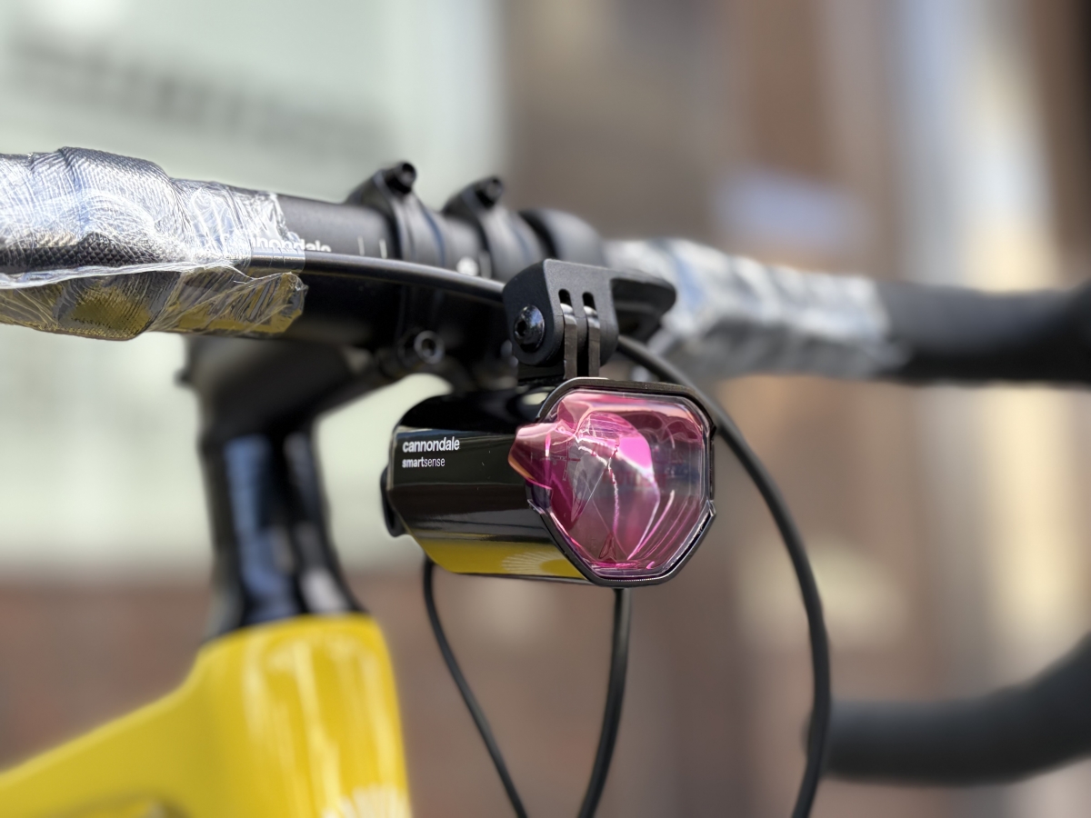 フロント、リアライトと接続されており、これがCANNONDALEアプリから信号を送ることで反応します。このバッテリー、ライトはすべて安心安全のGARMIN製品、信頼性バッチリです。スマートかつパワフルでコンパクトなライトで、シンプルな操作で視認性と操作性を高めてくれます。