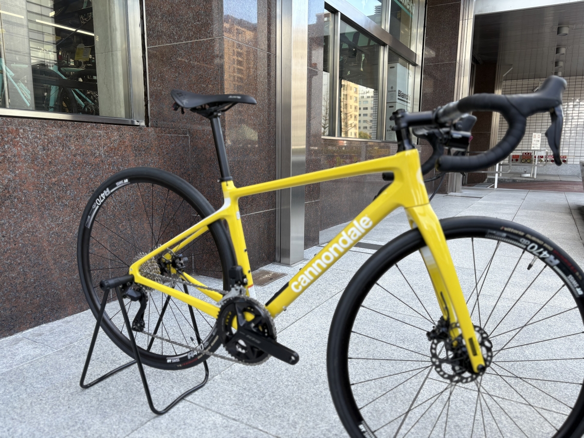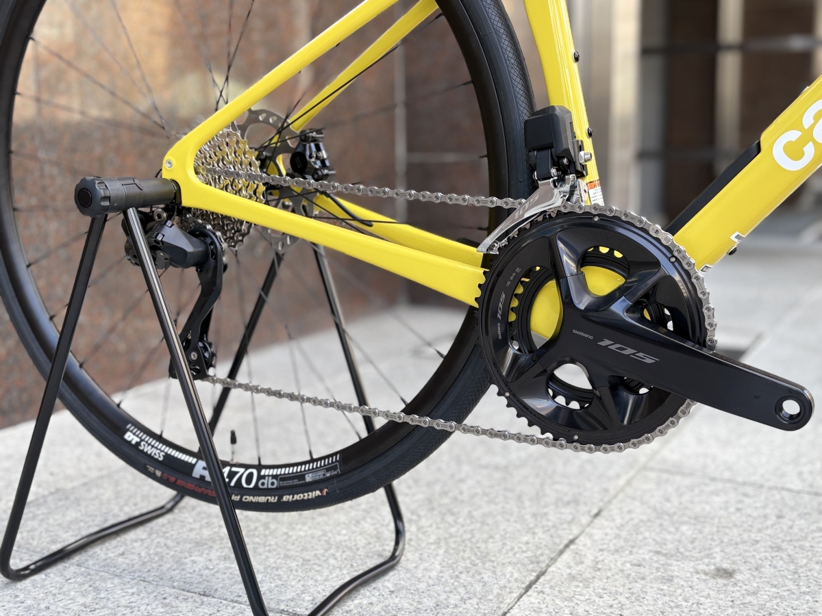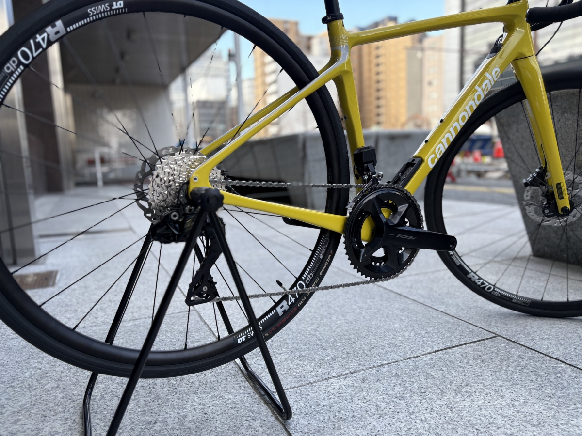変速機は定番の105Di2を装備。電動変速で安定した変速を体感できます。ロングライドなら簡単な操作感は必須。特にこの季節は手がかじかんでしまいますので軽い力で変速できるDi2は必須レベルです。