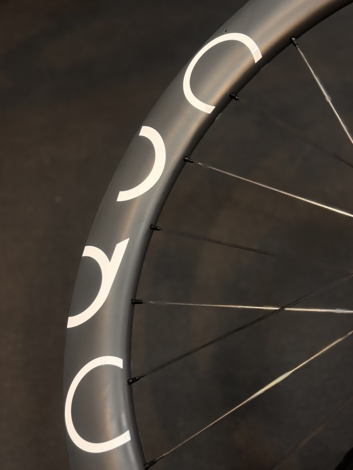 OQUOは独自でホイール全体を設計しています。風洞実験ではより速い走行を追求し、ミニフック採用やタイヤとリムの接合部の改善、内幅23mmのリム採用で乱流を低減しており、横風耐性、ハンドリング性能を向上させどんな路面でも安定して走ります。あらゆる細部にこだわって製造されています。