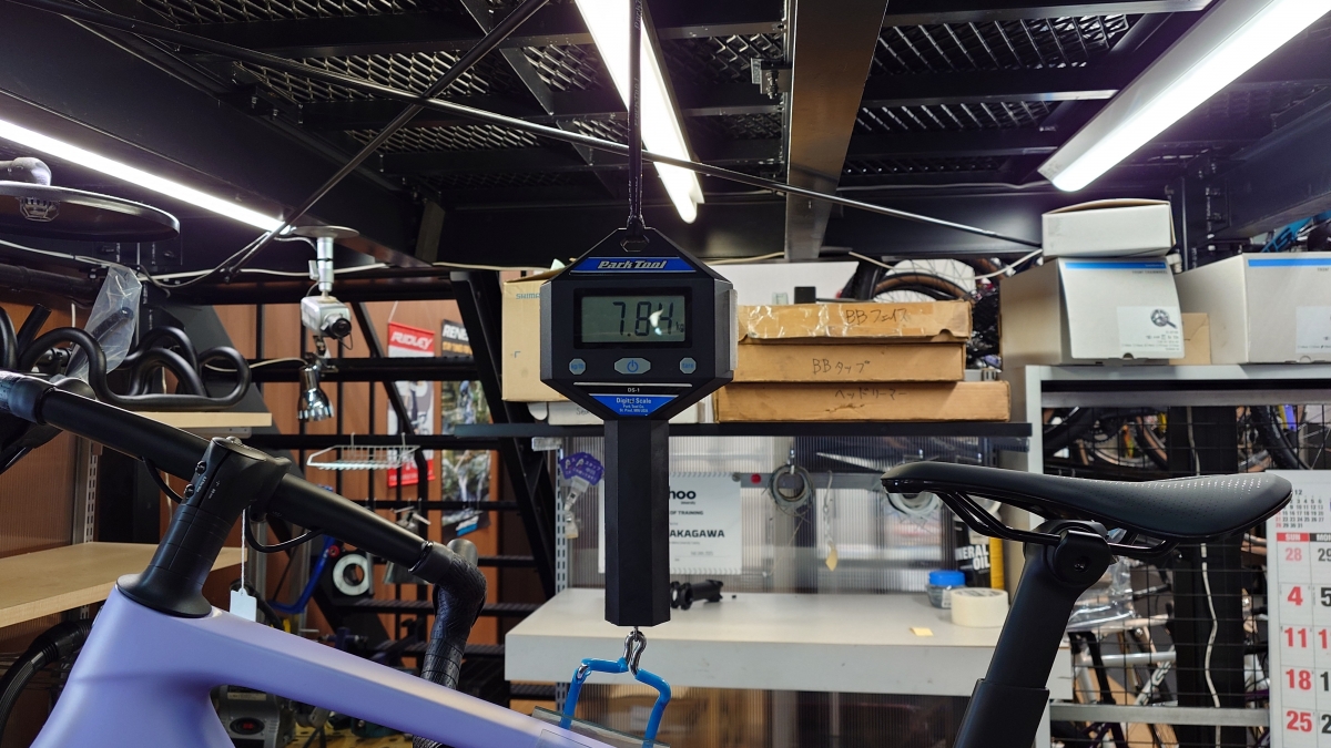 重量の実測値は7.84kgです。公称値は7.87kg(MLサイズ)ですので、ほぼピッタリ。
