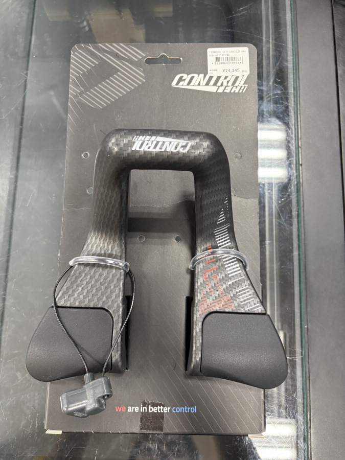 このクワガタみたいな形をしているのがDHバー。手前のお皿のようなところに腕を置くことで低いポジションを取ることが出来ます。一見苦しそうなポジションに見えますが、実際は速度を維持するのに最適なポジションです。体が硬い方でも微調整ができるのが素晴らしいポイントです。