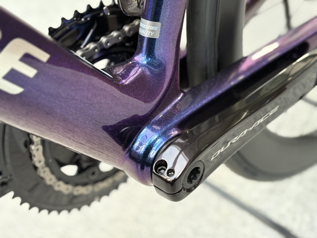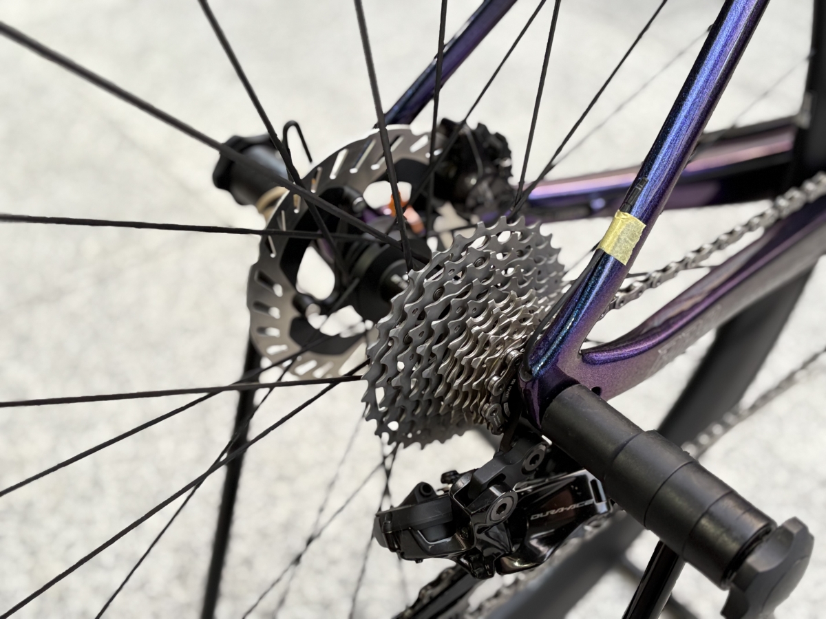 カラーはレーシングアンドロメダ。まさに銀河のような深みのあるカラーリングは高級感にあふれており、他メーカーではあまり見ないカラーにほれぼれしてしまいます。