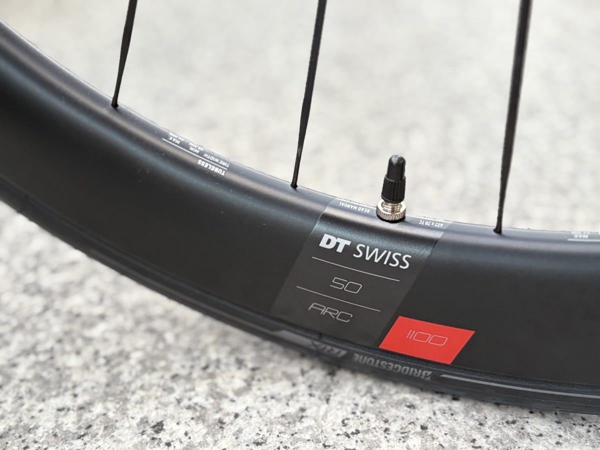 DT SWISS ARC1100 DICUT 50を搭載。リムハイト50mmで、前後重量1,472gとバランスよし。高速域の伸びが期待できそうです。