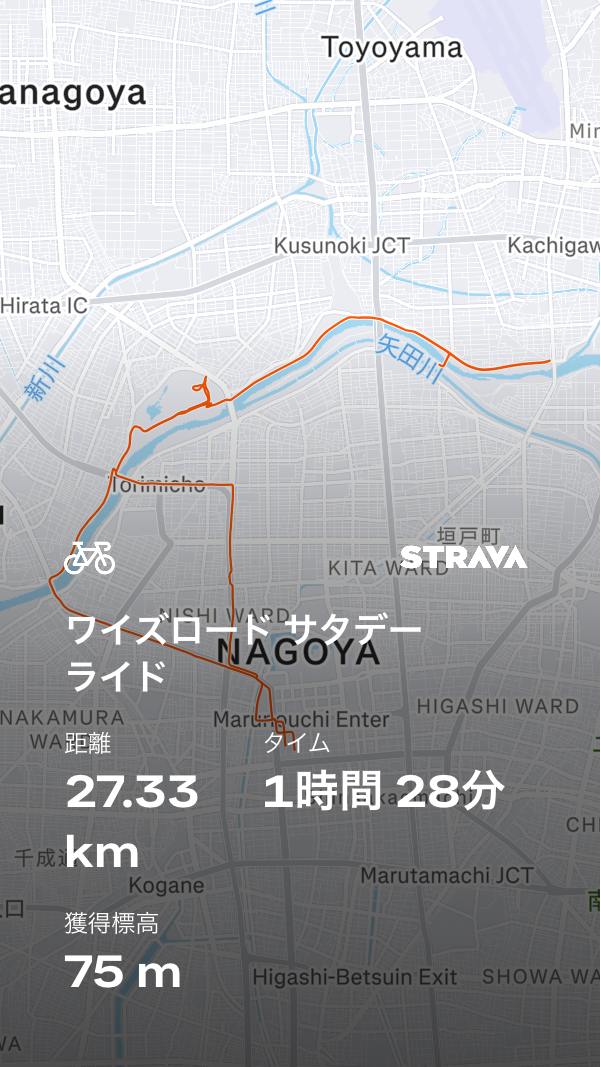 サイクリングコース(約2km)を2~3周or庄内川サイクリングロードを走る予定です。途中で、集団走行のいろはや希望者には走行スキルのレクチャーを行います!トータル30kmくらいのライドを予定しています!