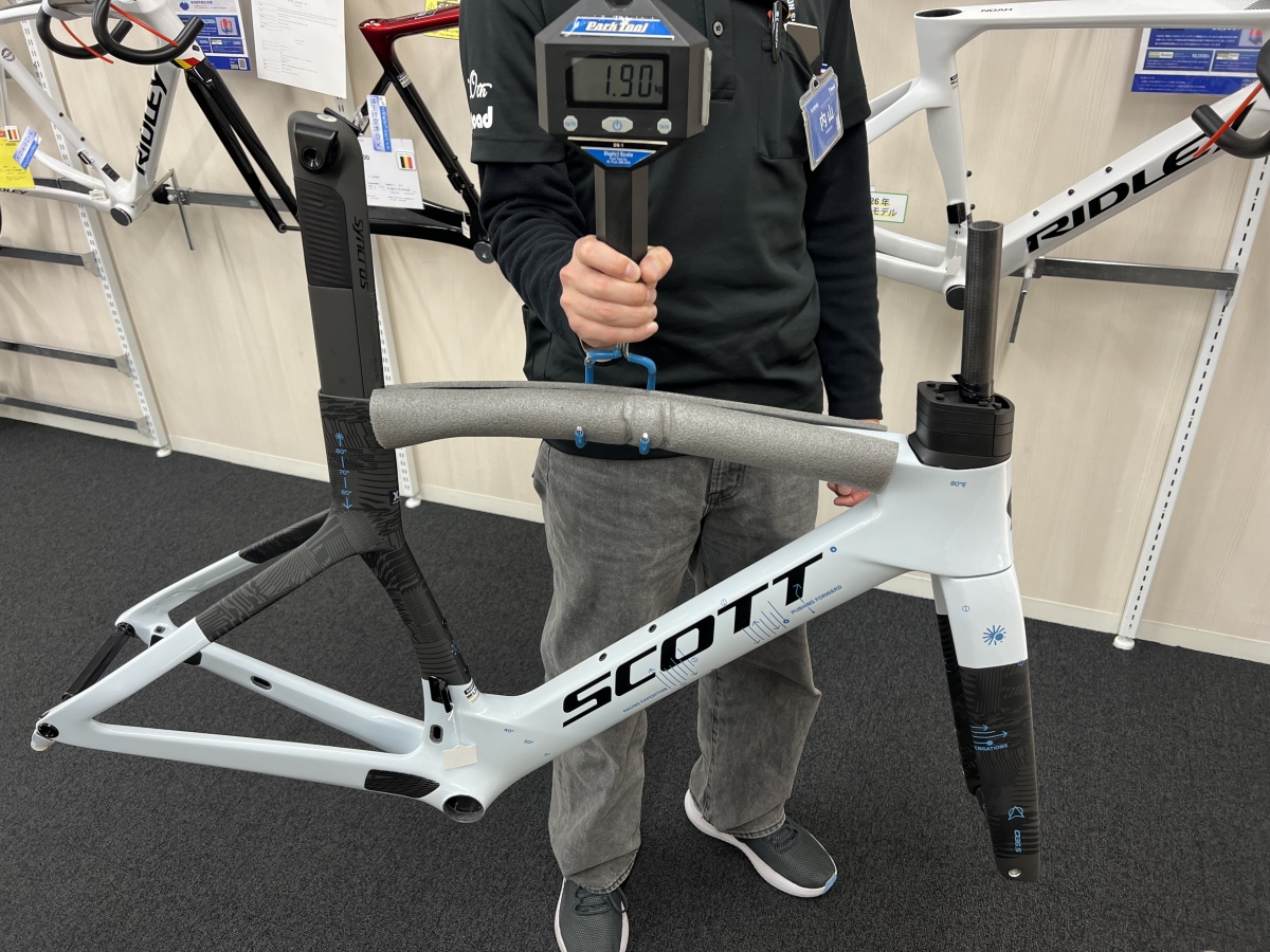 軽量な事で知られるSCOTTなので内心私が乗るオールラウンダーがエアロに負けはしないかとヒヤヒヤしておりましたがしっかり私のバイクの方が軽くて安心。