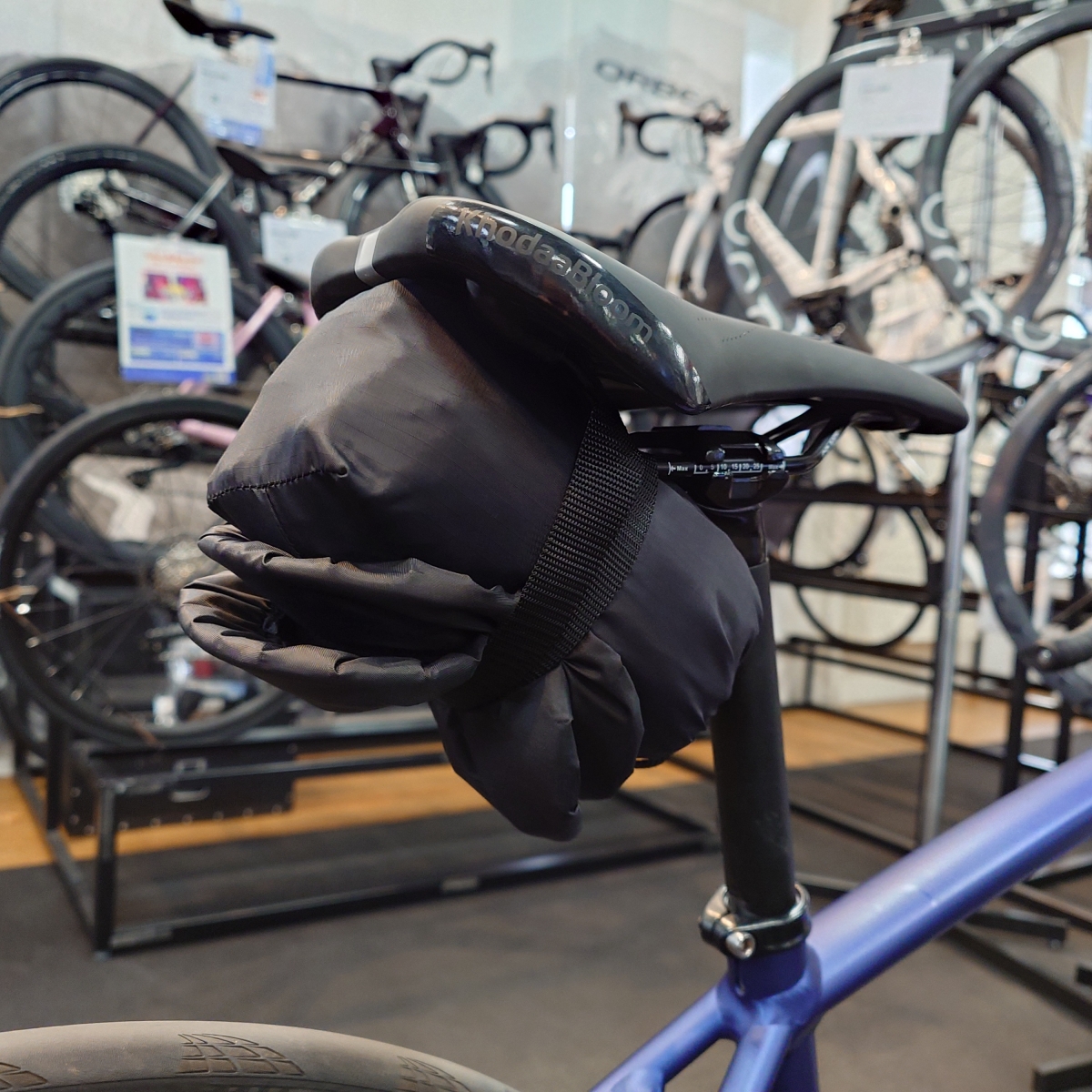 普段はサドルバッグに固定している輪行袋を解いて広げて