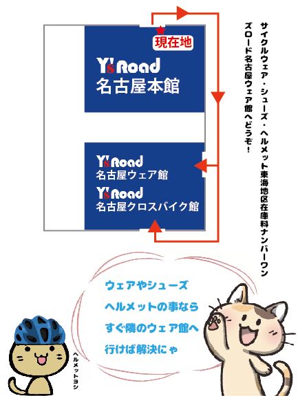 今回ご紹介した商品はワイズロード名古屋本館となりのワイズロード名古屋ウェア館にございます。