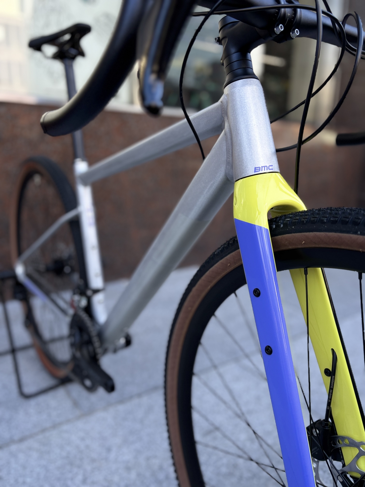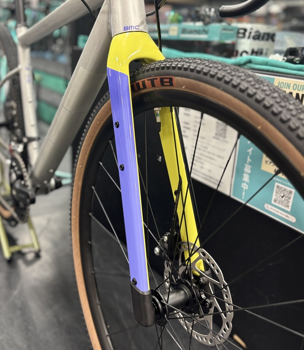 ちょっと角ばったフォークにBMCらしさを感じるバイクですね。