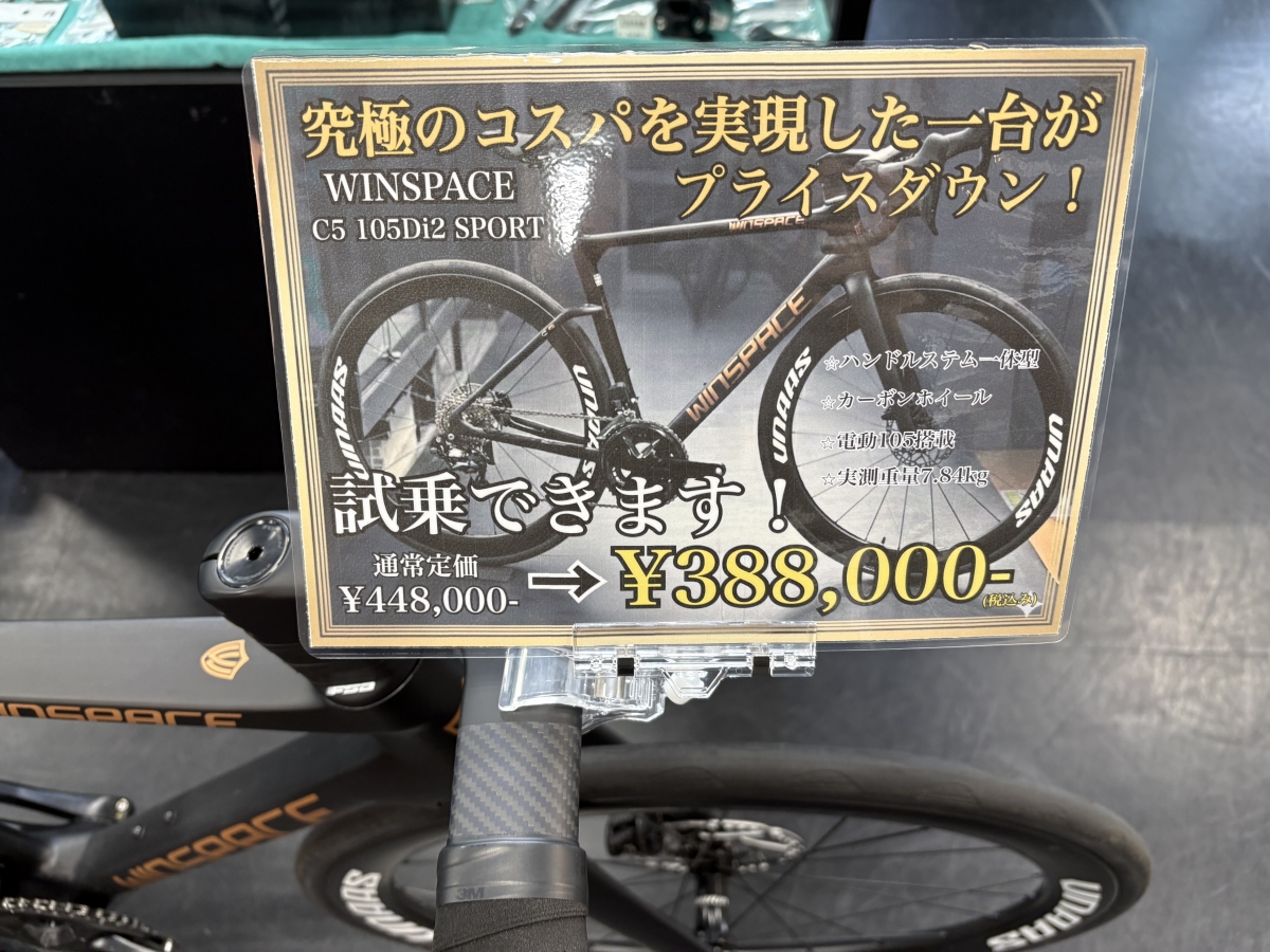 重量も7.8kgととんでも軽いです。そしてなんと今なら試乗車あります。ロードバイクなんて実際乗ってみんと分からんものなのでこの機会に是非体験して行ってください。