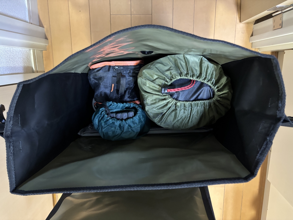 ずっと「これだけ容量があれば積載は安心」って言ってますが、なにがどう安心なのか、具体的にモノを詰めてみます。