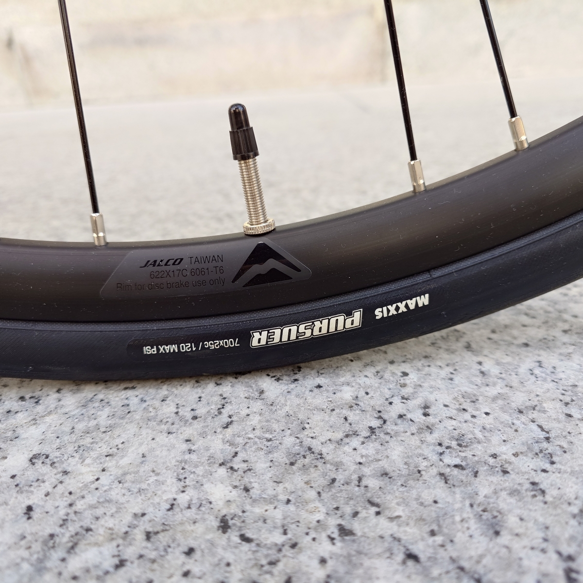 タイヤも新車装着の物がそのまま使えます。チューブのバルブ長が合いませんので、それだけ別途必要ですが価格的には誤差の範囲内ではないでしょうか。31万弱でカーボンホイールを履いた105アルミ完成車が手に入ると思うと正直めん玉ぶっ飛ぶ価格です。