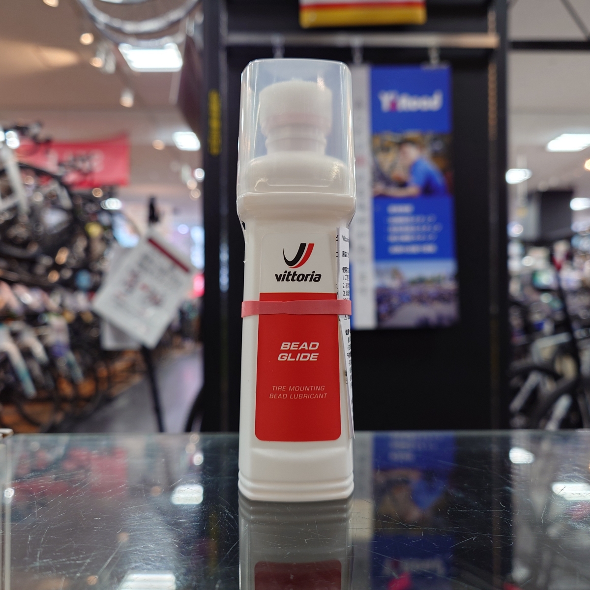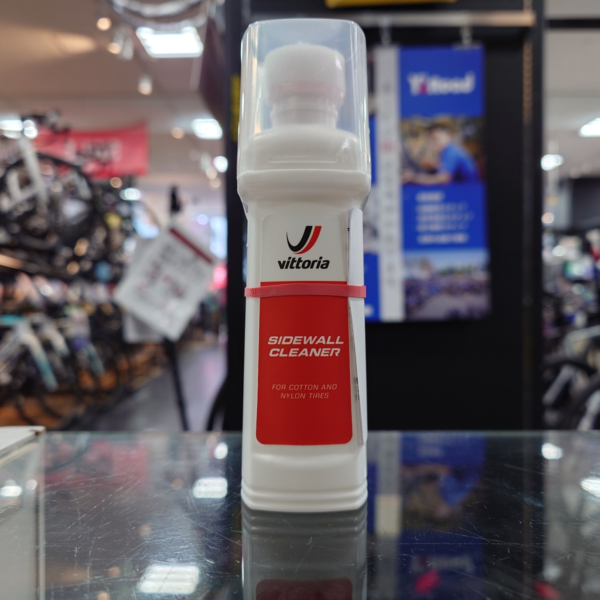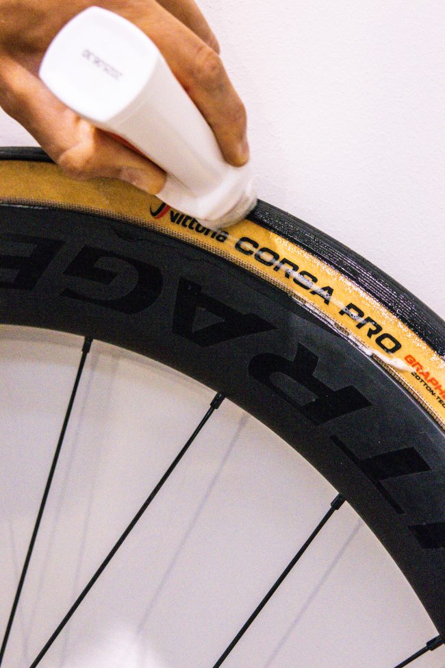 こちらは乾くと後が残らず、タイヤやリムを傷めない安全な成分でできています。特にヴィットリアはコットンケーシングのモデルが有名ですが、ナイロン製と違ってケミカルに侵されやすい可能性が潜んでいるため、この純正品は超安心の逸品です。