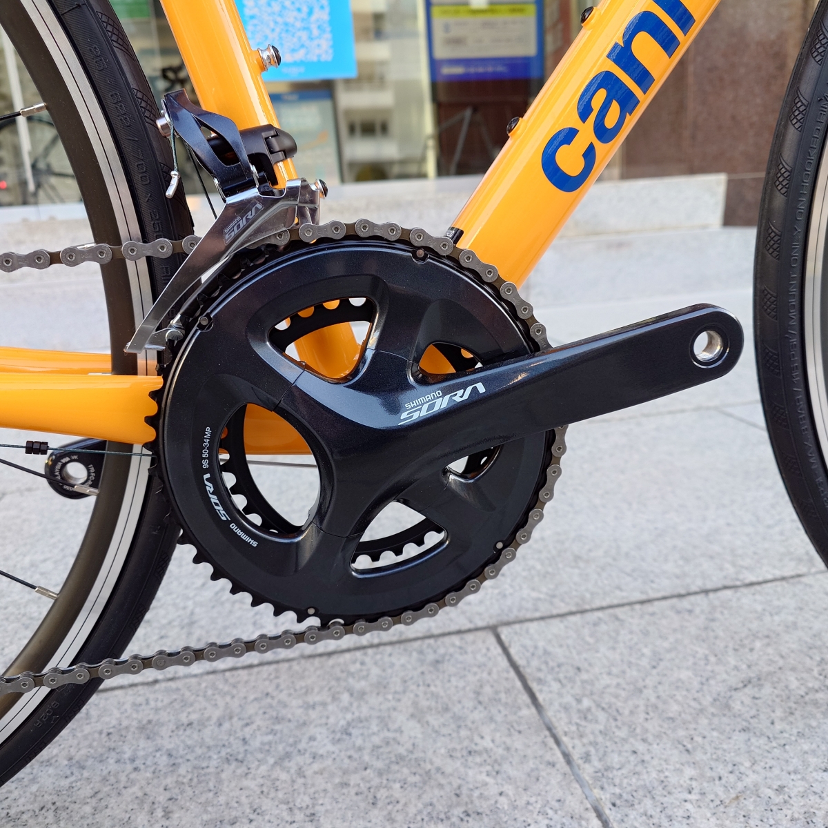 リア9速で街乗りやちょっとしたサイクリングではちょうどいいギアで、リムブレーキのため車体も軽くSORAのキャリパーは制動力に大きな不安もありません。設計の狙い通りのシャキシャキとしたロードバイクらしさを体験できる一台です。