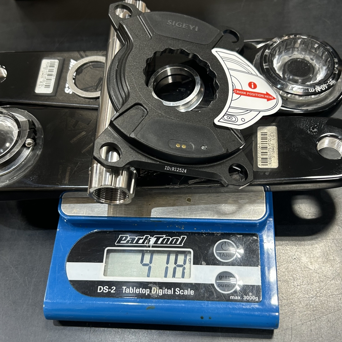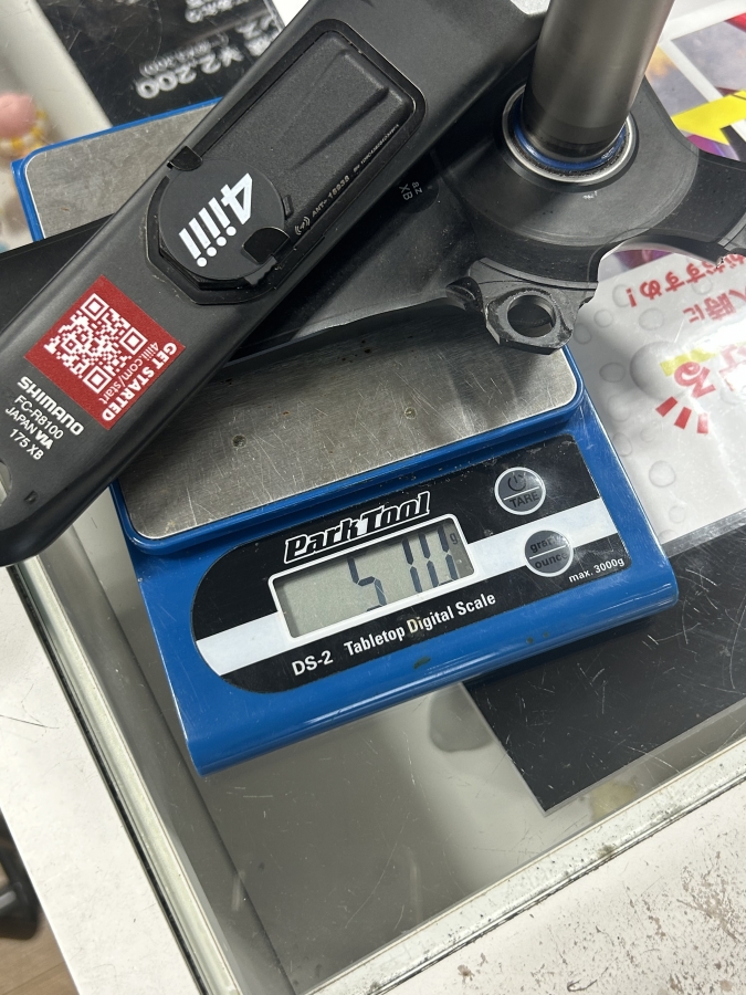 パワーメーターのスパイダー込みで418gだったので、152g軽いんですね。