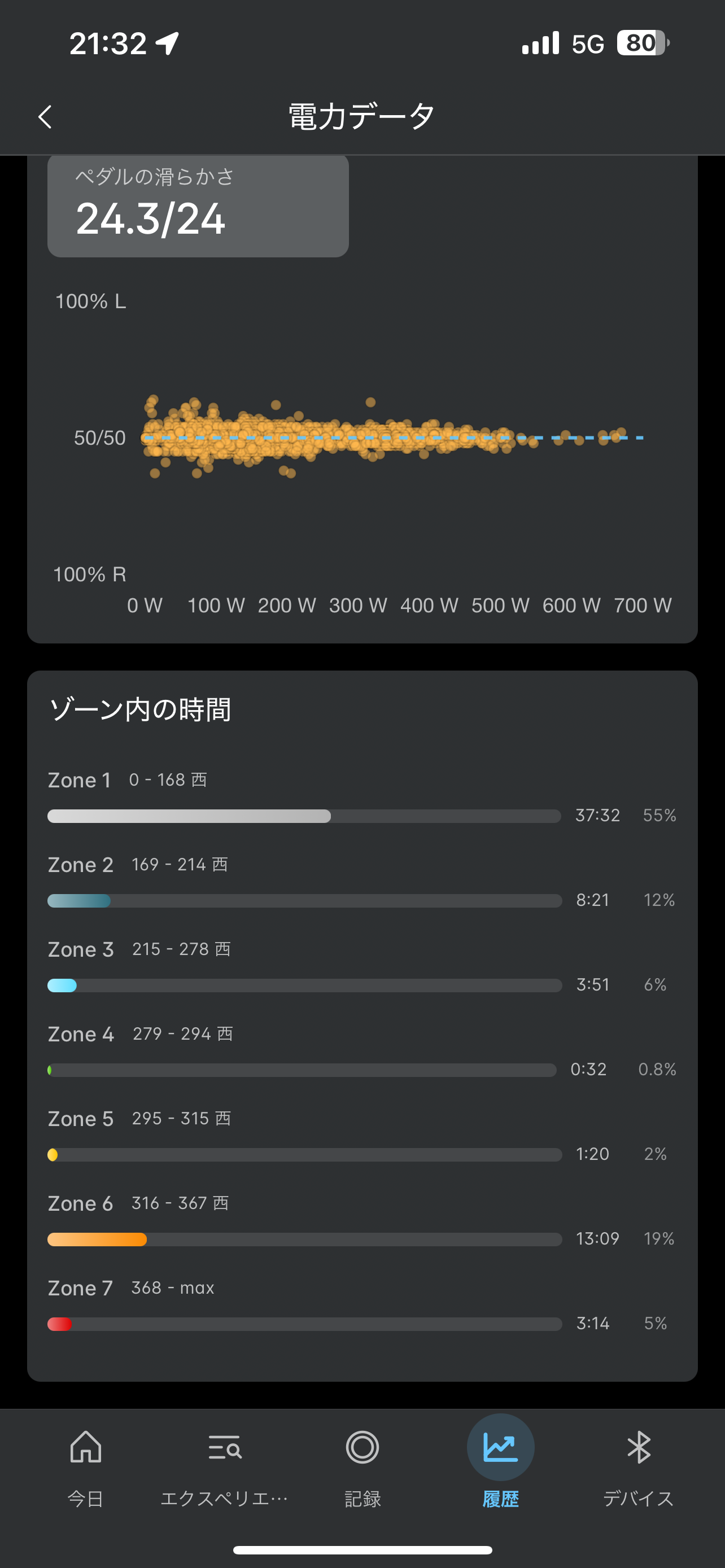その点、SIGEYIに変わって両足計測なのでパワーの表示の反応が速く、左右差などが表示できるのが面白かったです。あと、充電式なのも嬉しいポイントです。
