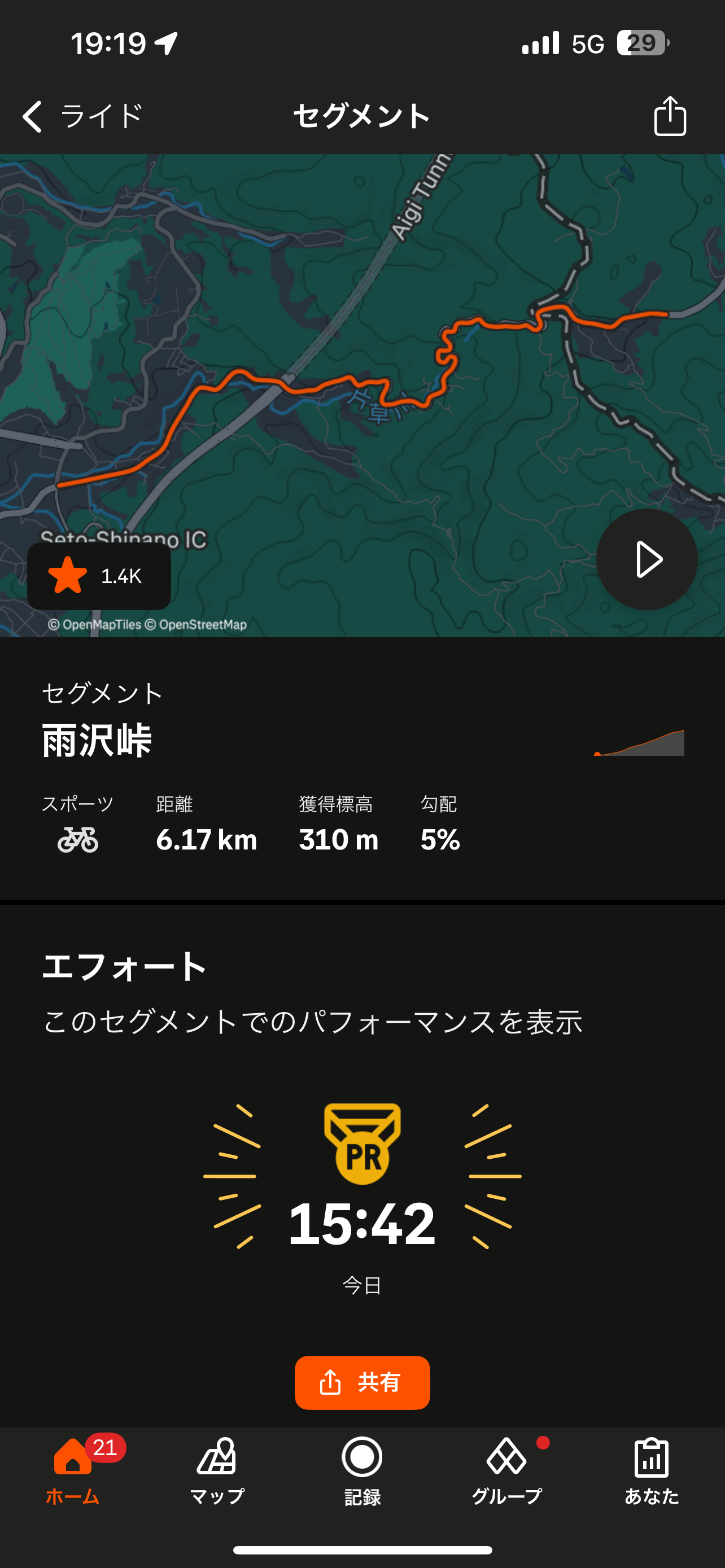 まさかの全盛期から約20秒遅れの15分42秒!自分が一番驚きましたw
