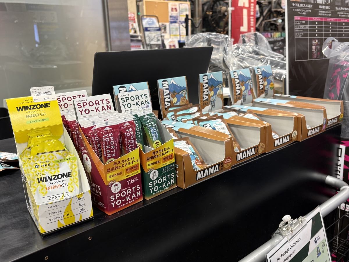 MANABAR×5それぞれ別の味、スポークようかん×2、WINZONEシークワーサー味です。あと、家にあった某コンビニようかんも。