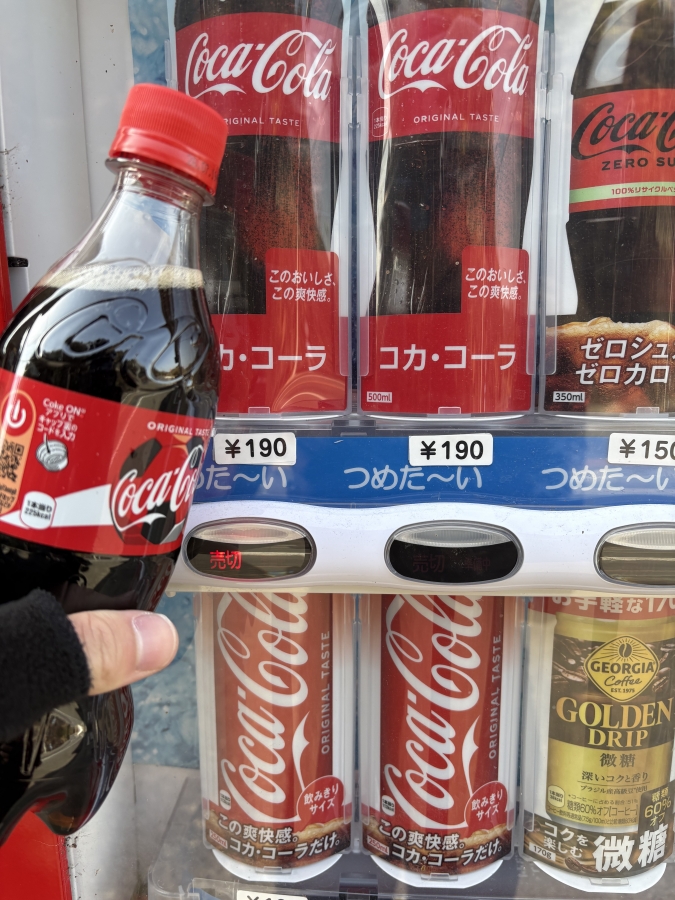 激坂後のコーラが世界一うまいかららしいです。缶コーラがなかったので泣く泣くペットボトルを購入。ラス1だったよやったね。ただ、あまりの多さに飲み干すのに30分かかってしまいました。反省。