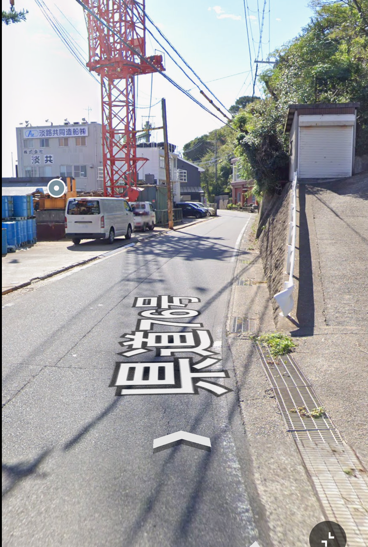 なんか山道に入ってきましたね、道幅が狭くなって来ました。造船所でっけー。