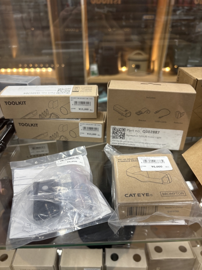 他にも在庫中のパーツや用品がたくさんありますので、愛知のBROMPTONオーナー様は是非一度はご来店いただければと思います!