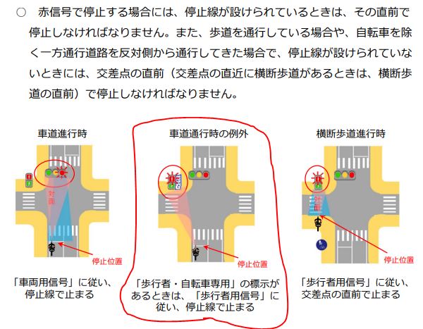 “歩行者・自転車専用信号”を確認可能な位置としては、最低でも右上の黄点の位置なのです。