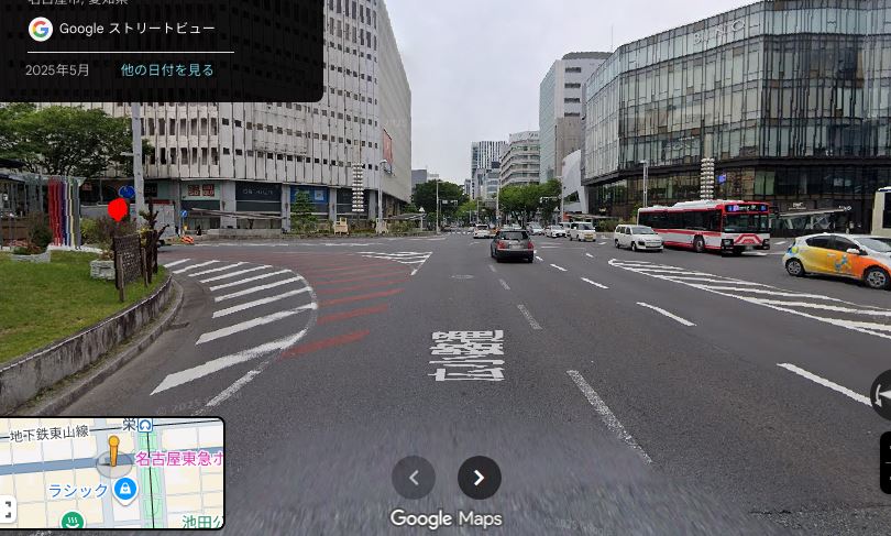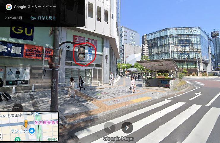 ※交差点の大きさにより変化しますが、私の体感では片側3車線合計6車線の栄交差点では4~5秒程度は青だと思います。