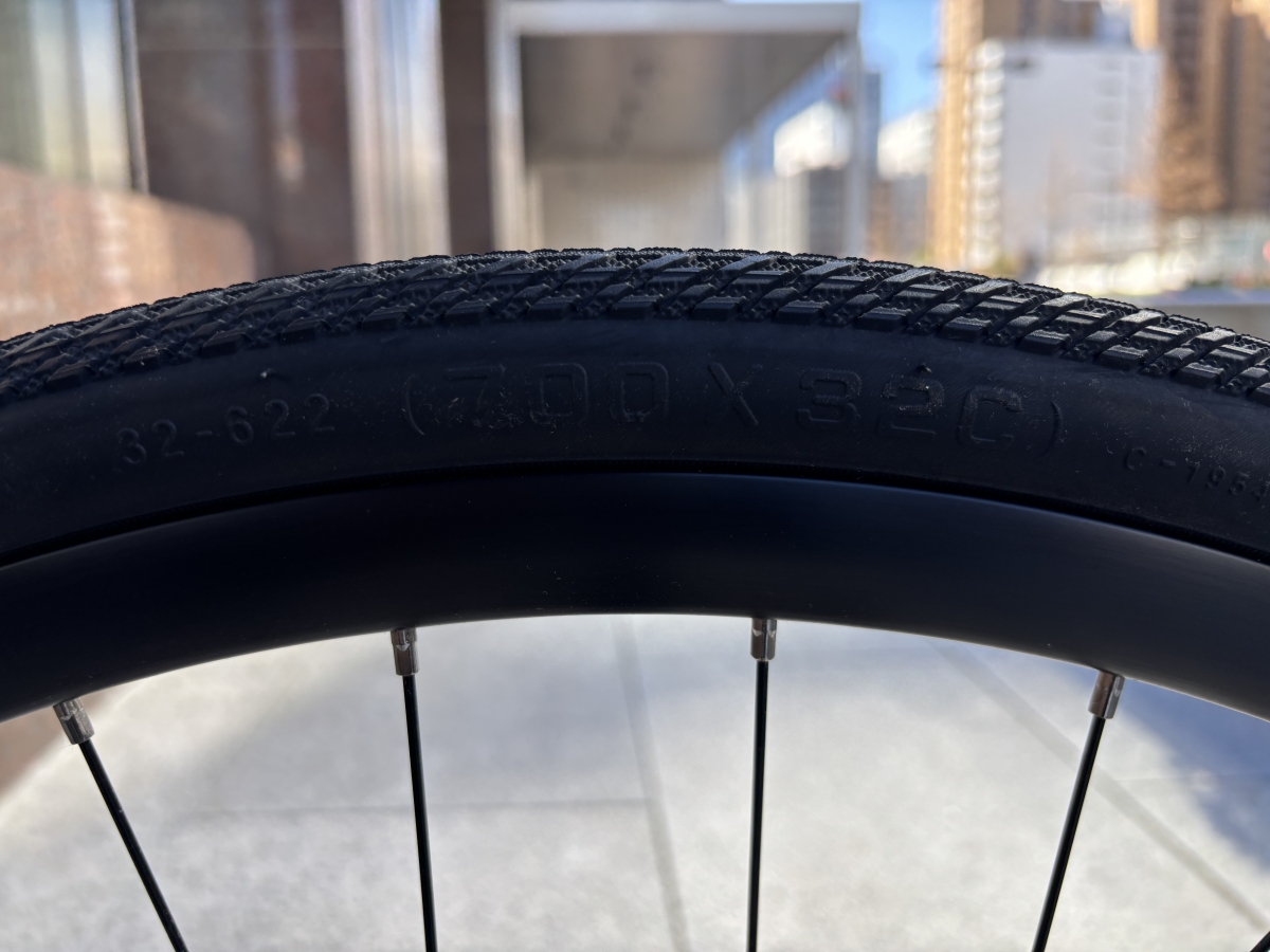最初から32Cのタイヤを装備しています。32Cはちょっと太めのタイヤの部類に入りますが、ロードバイクに初めて乗るという方はコレくらいの太さの方が安心感があります。しかも、太いタイヤ即ち乗り心地がよいということなので、長距離を乗るとしても疲れにくいと言えます。