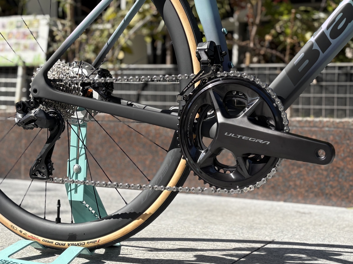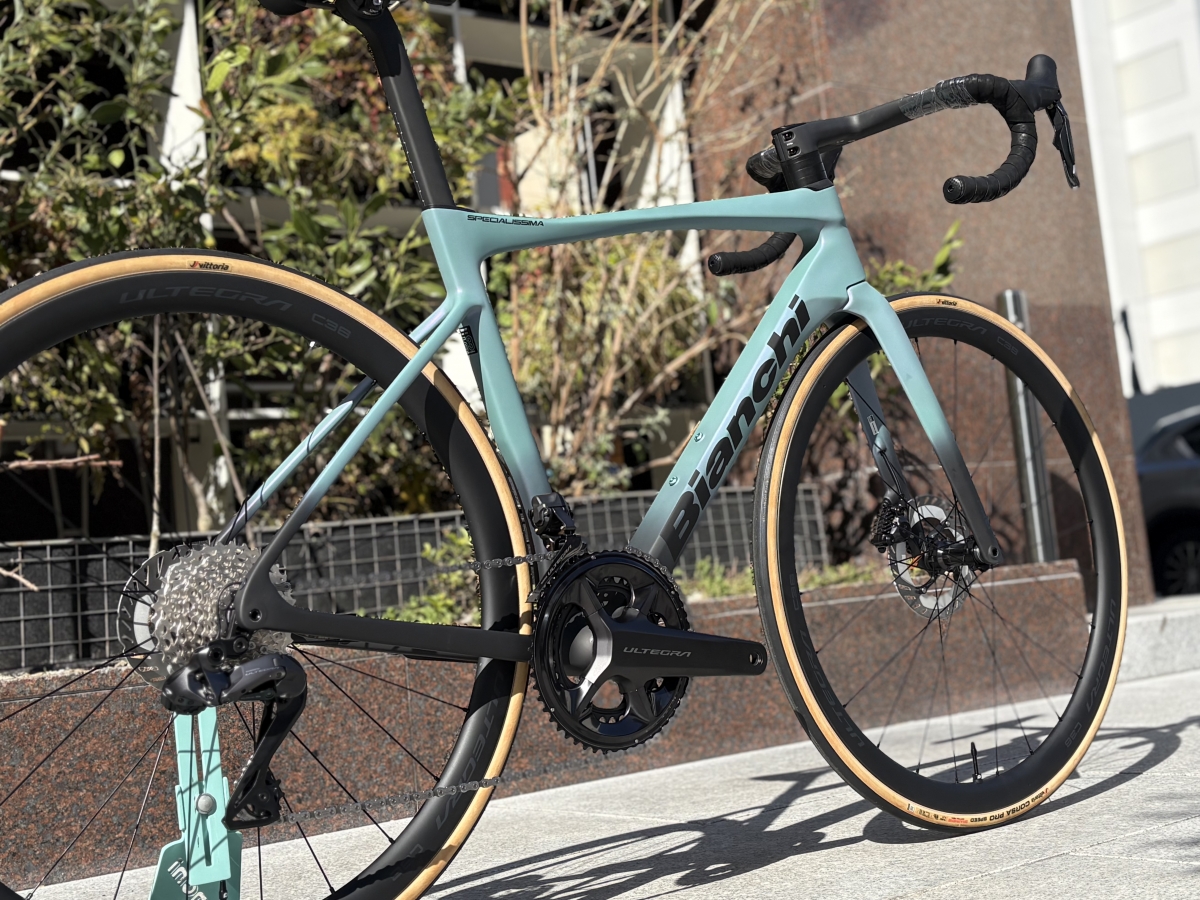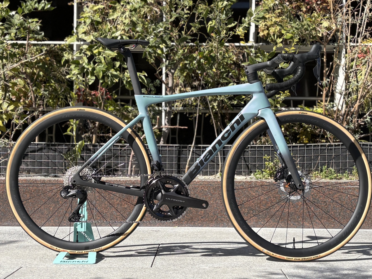 エアロと軽量の両立に成功した今回のSPECIALISSIMA PROは最上位グレードにはないBIANCHI独自の振動吸収技術「カウンターヴェイル」を搭載した軽量オールラウンダーバイクに仕上がっています。